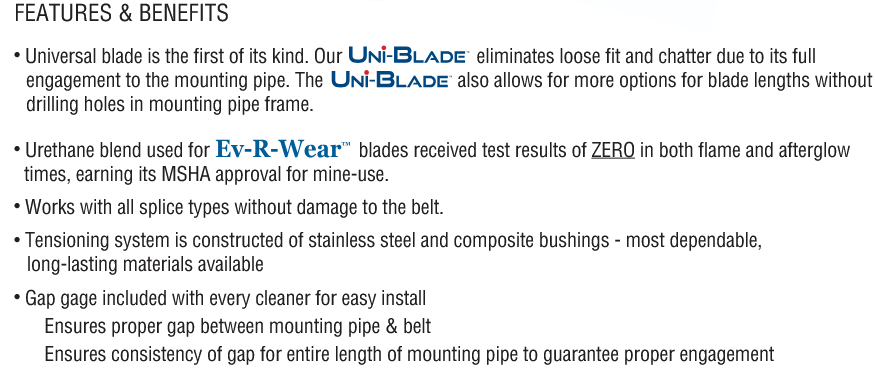 E1SD Primary Belt Cleaner