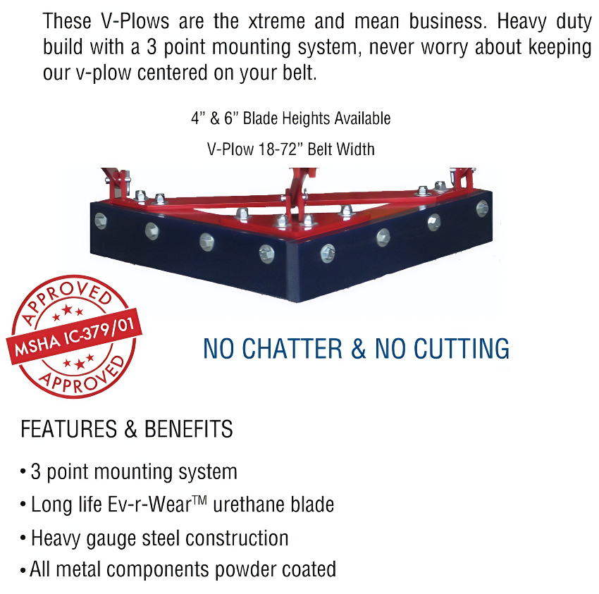 These V-Plows are the xtreme and mean business. Heavy duty build with a 3 point mounting system, never worry about keeping our v-plow centered on your belt.